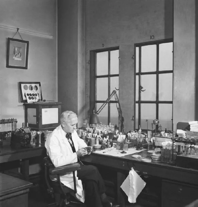 Following a month-long family holiday, Alexander Fleming returned to St Mary’s Hospital on the morning of 3 September 1928. The Scot found his laboratory even more cluttered than usual. He had hastily swept his petri dishes to one side before his trip, to clear room for his lab partner Stuart R. Craddock, and the dishes were now piled high. His first task of the day was to sort them. Unsurprisingly, after stewing in the laboratory for a month, the majority of the cultures growing in the dishes had been swamped by mould. Fleming took a large tray of Lysol disinfectant and began placing the contaminated samples within. Normally this would have been a job for a lab assistant but, eager to get back to work, he undertook the task himself. A pivotal distraction soon arrived in the form of D Merlin Pryce, Fleming’s ex-lab assistant, stopping by to welcome him back from holiday.