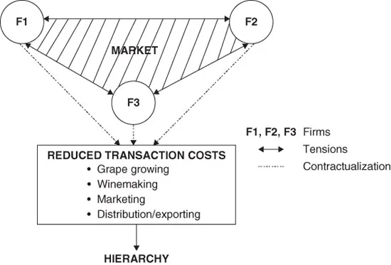 Institutionalist economics is the theoretical lens most frequently used, both in general and for the wine industry. According to the originator of its central concept of “transaction costs,” Oliver Williamson (1975), economic actors are above all opportunists whose self-interested and short-term-oriented behavior generates uncertainty that has costs. These costs encourage actors, often aided by the state, to collectively produce institutional safeguards to protect themselves from attacks from their competitors. In their purest form, these measures create an institutionalized hierarchy that is an alternative to pure markets. Those who subscribe to institutionalist economics contend that hybrids of markets and institutions are what structure economic behavior. More precisely, those who defend this theory argue that economic actors put in place explicit or implicit contracts that they rationally follow in order to protect and enhance their material interests. The assumption here is that actors enter into this contractual environment in full knowledge of its constraints and opportunities, as well as what is in their own best interest.