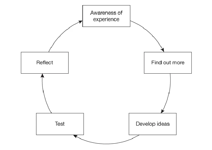 This sequence of recognising a concern, exploring and testing ideas and reflecting on what you have learnt can be applied to learning very straightforward things or to projects and investigations that involve much longer learning time-scales. Many practitioners in health and social care use this framework or a similar one in their regular reflection on practice to help them to ensure that they keep learning from their experience and avoid becoming complacent or rigidly repetitive in their practice.