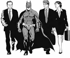 Fig. 1: Batmanās inner and outer world is much darker than that of his superhero counterparts.