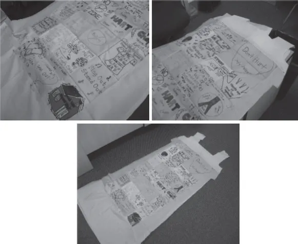 • Each class received one fabric square to depict a motto or reflection regarding bullying.