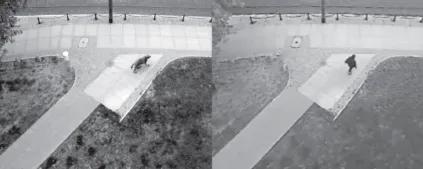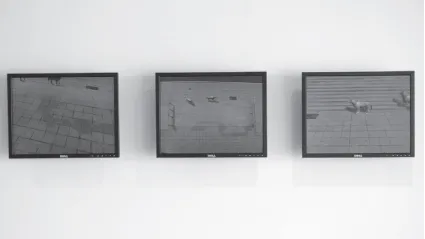In Jakub Jasiukiewiczâs Canis Lupus Polonus (The Polish Wolf) (2008â2010), roaming wolves have overtaken the wild landscape of the Polish city. Canis Lupus (Latin for grey wolf) plays on the idea of Poland as an untamed wilderness with nary a sign of civilization, unresponsive to the âprogressâ and âcivilityâ of the West. The artist describes it as a reflection on âthe stereotypical way of thinking about East-Central Europe as a deep and wild provinceâ (Jasiukiewicz n.d.). The work has been exhibited numerous times, including at the WRO Mediations Biennale in WrocĆaw in 2010. It consists of an interactive installation drawing on strategies and technologies of surveillance, whereby four cameras are installed to monitor a sidewalk and film the movement of passers-by. The viewer is located in a gallery with windows overlooking this sidewalk. Three screens mounted onto the window display the scene under observation so that the viewer can at once see the real action and the images on the screens. These screens display the sidewalks from the different perspectives being monitored, the image looking like something from an analogue CCTV system, complete with grey scale, noise, and other imperfections (Jasiukiewicz n.d.). But instead of displaying people, Jasiukiewicz manipulates the image so that each human form is transformed into a 3D avatar of a wolf. What the viewer sees then is a CCTV-like monitoring system with wolves walking and crossing this city space (see Figures 4â6). The project is as much about surveillance as it is about stereotypes of âPolishness,â and in this, Jasiukiewicz in many ways echoes the sensibilities of his generation (he was born in 1983), exploiting a tongue-incheek rapport with Polish history and politics, as well as an unaffectedness with being a âPolishâ artist (personal communication, 22 May 2010). The wolf is a complicated and important figure, one that plays upon historical stereotypes of âPolesâŠas conspirators, revolutionaries, anarchists, and even barbarians, inhabiting âswamps, woods and marches on which wolves and bears swarm in packs and endanger the roadsââ (as quoted in Castle and Taras 2002, 17). Until a recent resurgence, the wolf had been extinct in âalmost all of Europeâ except for the âlargest concentrationsâŠin the former Soviet Unionâ (Busch 2007, 22) so that the wildness associated with a wolfâs territory was for a long time located in ECE.1 Metaphors tied to wolves are two-sided: the wolf has been regarded as a symbol of âavarice, viciousness, and guileâ (Busch 2007, 99), but also features prominently in certain foundational myths (from Rome to Lithuania), an omen of victory or luck. Drawing on these two-sided connotations, Jasiukiewiczâs wolf may be wild, but perhaps he is also the keeper of the land. Moreover, the wolfâs small pack existence may also offer a way of conceiving of a people, representing the space and strain between individualism and collectivity in the formation of a society. On the surface, then, Canis Lupus creates a surrealist image that takes literally the derogatory stereotype of Poland as wild by drawing on the negative association with wolves. The counterpoint, however, is the symbolism of the wolf as a protector of territory through the vigilance of the pack. In doing so, Canis Lupus alludes to the process of establishing a new set of expectations about Polish society and its place within a globalized world and questions whether âthe term âEast-Central Europeâ is still eligible in the discussion about the contemporary worldâ (Jasiukiewicz n.d.).
