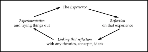 In essence then the experience will, if possible, be followed by some kind of reflection. We have to admit that for most of our professional lives it is very difficult to do this; things happen too fast, we cannot take out time to reflect. āSorry boss, Iāll be late for the meeting, Iām reflecting on that recent memo you sent meā. Such a position is not defensible, it couldnāt work. However, we should make an effort to build in some reflection time into our work.