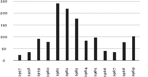 Images in Ogonyok depicting space were not consistently distributed over the years. From TABLE 1, one can note that space images were most concentrated between 1961 and 1963. On the basis of the quantity of images, it is easy to see that space-related news coverage was at its peak during those years.