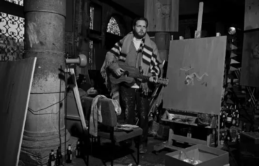 Ragnar Kjartansson was Icelandās representative for the Venice Biennale in 2009. Recalling an earlier era of durational performance practice, he spent the course of the six-month-long exhibition in the pavilion space (off-site from the grandiose Giardini in a still grandiose palazzo) garbed in a bathrobe, strumming an acoustic guitar, chatting with visitors and making the occasional painting of fellow artist/model Pall Haukur Bjornsson amidst some formidable consumption of lager and cigarettes. Empty glass bottles cluttered the space; near an old-school turntable was a stack of LPs, not so current hits including The Freewheelinā Bob Dylan (1963).