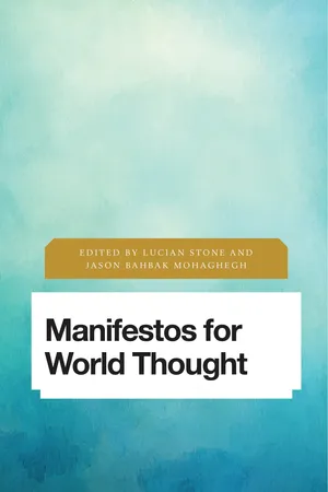Yes, you can access Manifestos for World Thought by Lucian Stone,Jason Bahbak Mohaghegh, Lucian Stone, Jason Bahbak Mohaghegh in PDF and/or ePUB format, as well as other popular books in Philosophy & Literary Criticism for Comparative Literature. We have over one million books available in our catalogue for you to explore.