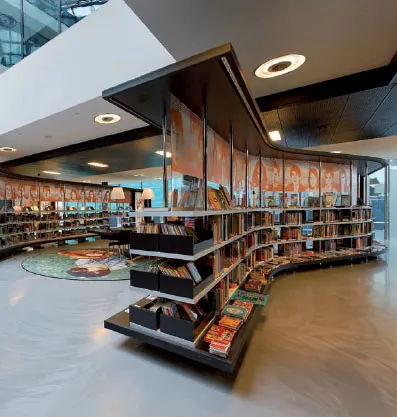 The main challenge of the architects was to design all the public spaces in the new Almere library. Complementary facilities and shelves, such as counters, Internet connection areas, a cafeteria-reading area, study areas, and a multimedia department, were set.