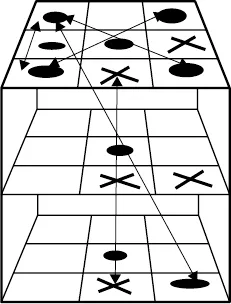 Those chains can spread in many directions. If you place a cross in the bottom corner of the lower layer, it also activates the patterns on the middle and top layers simultaneously. If you only consider the layout on one level, you are likely to lose the game. Rather, to play the game well, you have to think of parallel activation on all levels at the same time. Likewise, activation of neurons produces parallel activation in other connected networks of patterns. That is just as well, because the speed at which neural impulses travel from one neuron to the next in real time has been calculated to be simply too slow for the speed at which we know the brain can perform multiple operations. The best explanation for our efficient brain speed at completing tasks is this parallel organization of the neural patterns.6 Our brains really do multitask using the same hardware.