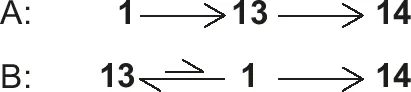Fig. 1.1: Proposed mechanisms for the conversion of erythromycin A (1) to anhydroerythromycin A (14). A: Atkins et al. [15]; B: Cachet et al. [16].