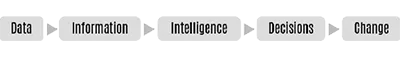 Evaluation and analytics take data and turn it into information. Information provides you with knowledge, which you can synthesize into intelligence using your experience and understanding of your organization. From there, you are equipped with what you need to make strategic decisions, which in turn drive change. Understanding the change you are trying to drive will inform all of your efforts. Decisions that require a change to something (a strategy, a system, people, a program, an investment, etc.) should be based on data. Evidence-based (i.e., data-rich) decisions result in change that improves outcomes, reduces risks, and optimizes investments.