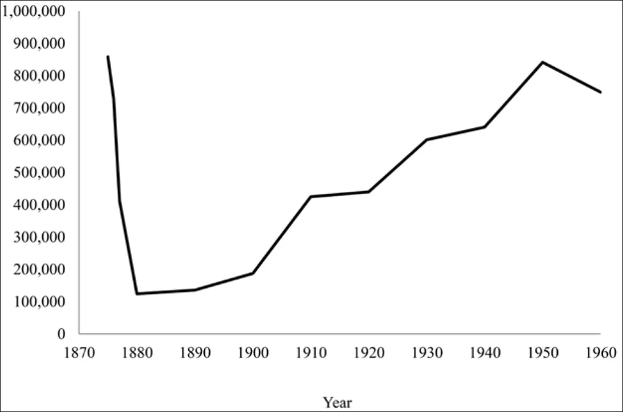 Figure 1.3. Grange Membership, 1875â1960. Source: Tontz (1964, table 1)