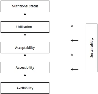 The following points sum up the meaning of the term, and the conditions that are essential to the attainment of ânutrition securityâ at national and household levels (See Diagram 1.1):