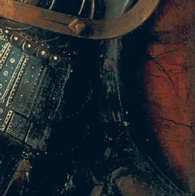 To describe this self-portrait as modest would be an understatement; it is not even the size of a match. Only in a reproduction fully as large as the painting itself â approximately six feet by four â would anyone be able to see it in context. The hiding place is what gives it away, as well as the pose, for to be reflected in the saintâs angled shield at this size the man in the turban would have to be standing back from the picture, near the centre, approximately where we stand to look. And what did the artist see when he stood there? Not the armour, of course, but the wet oil paint itself in which, working close, he must have been hazily reflected.