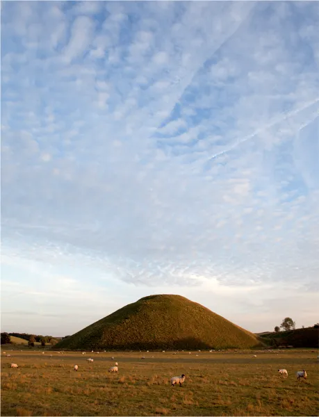 The exertion that went into digging out hill carvings pales into insignificance when compared with some of the other creations that display an extraordinary commitment of time and effort for no apparent purpose. Silbury Hill near Avesbury, in Wiltshire, is the tallest prehistoric, human-made mound in Europe and one of the largest in the world – similar in size to some of the smaller Egyptian pyramids of the Giza Necropolis. Composed mainly of chalk and clay excavated from the surrounding area, the mound stands 40 metres high and covers about two hectares. It is an exhibition of immense technical skill and prolonged control over labour and resources. Archaeologists calculate that Silbury Hill was built nearly 5,000 years ago and took 18 million man-hours, or 5,000 men working flat out for fifteen years to deposit and shape 250,000 cubic metres of material. This incredible structure contains absolutely nothing; no burial chamber of a great tribal chief and not one iota of treasure. It was a huge disappointment to the first Duke of Northumberland, who employed an army of Cornish miners to burrow their way through the hill in 1766, convinced they would find him some loot. There is no explanation why anyone should want to build Silbury Hill, apart from the indisputable fact that it looks jolly impressive in the middle of an otherwise flat piece of ground.