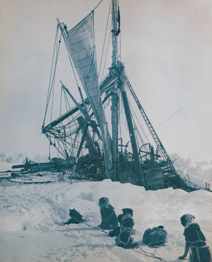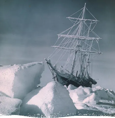 A manâs best friends: Shackletonâs ship and his dogs on ice.