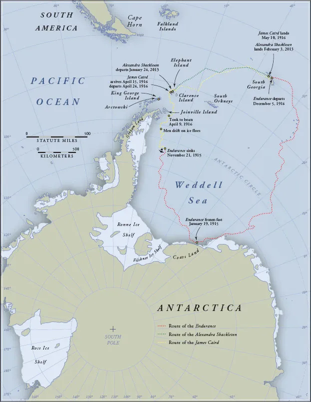 âMay I introduce Alexandra Shackleton, granddaughter of Sir Ernest?â said another voice beside me. This time it was that of my good friend Geraldine. I turned to greet Alexandra with the respect the Shackleton name instantly commands, particularly in the hallowed surrounds of the Greenwich Maritime Museum. It was 2002 and we were there for the opening of the exhibition South, a celebration of the achievements of Alexandraâs grandfather, Scott, and Amundsen, but perhaps also a recognition of the esteem with which Shackletonâs account of the Endurance expedition of 1914â17 of the same name was regarded.