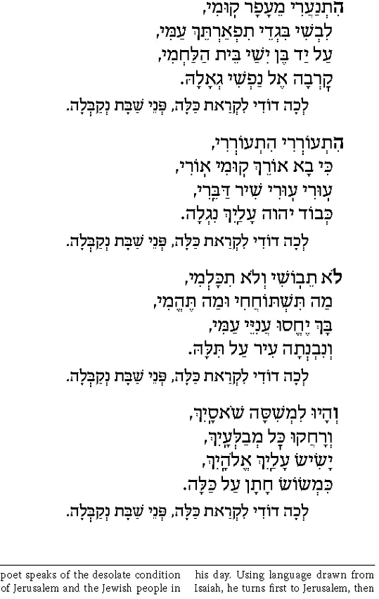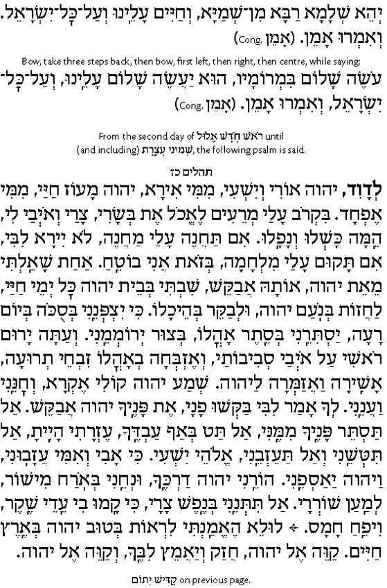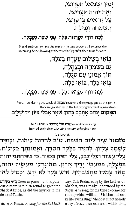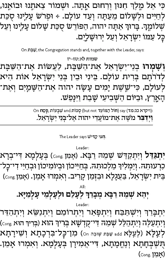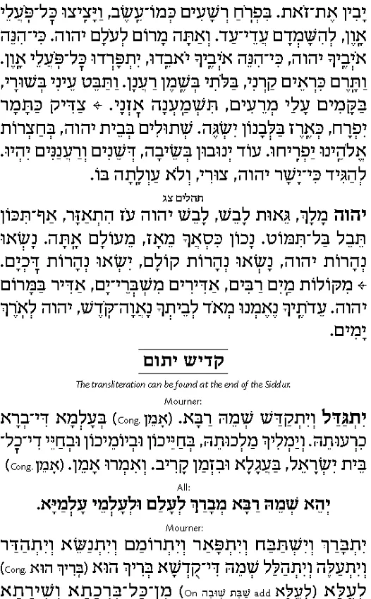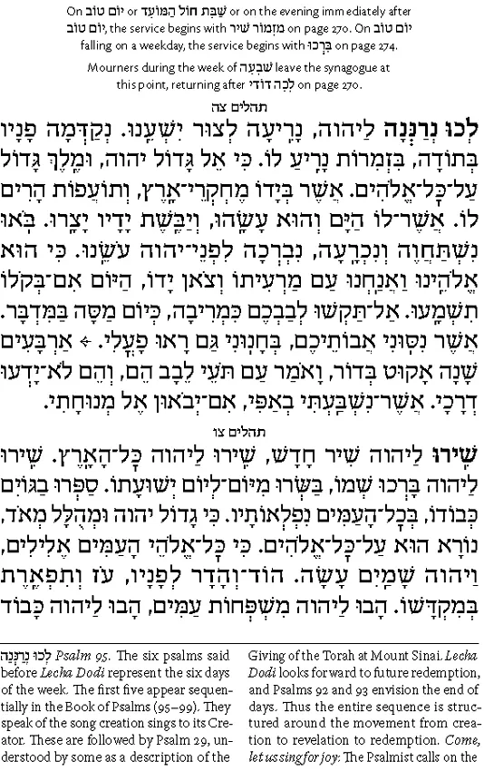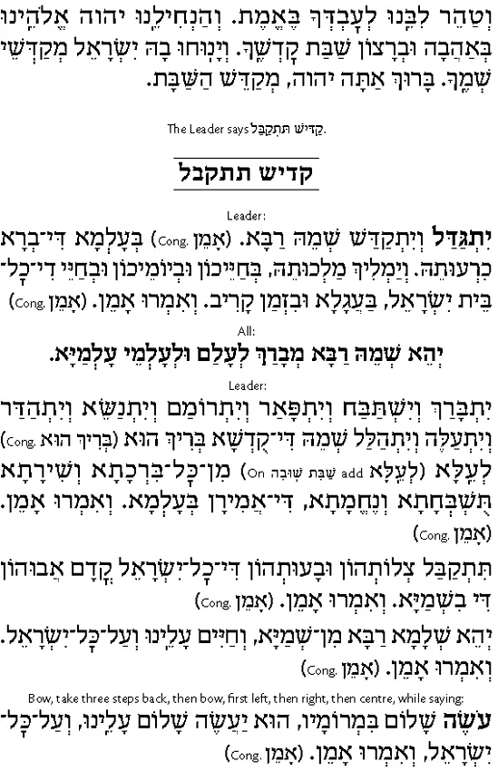 Mourners during the week of shivah leave the synagogue at this point, returning after “Come, my beloved” on page 271.