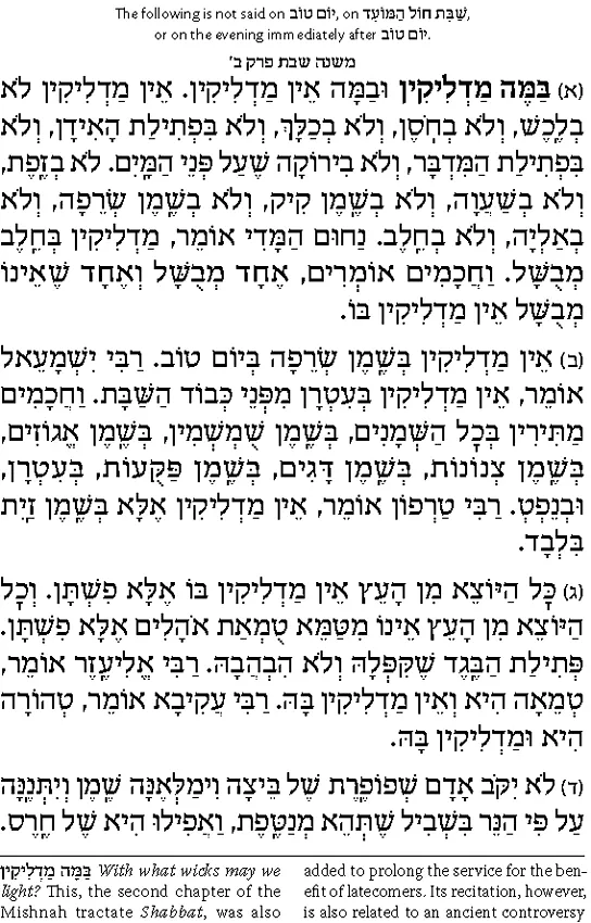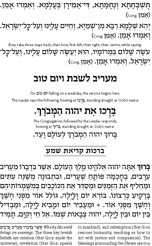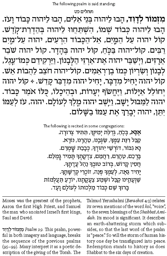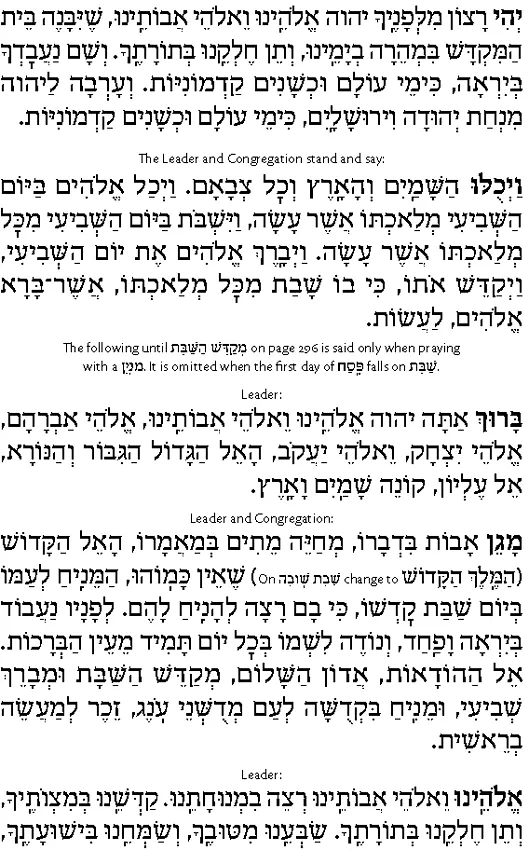 On a Festival or its intermediate Shabbat, or on the evening immediately after a Festival, the service begins with Psalm 92 on page 271. On Festivals falling on a weekday, the service begins with “Bless the LORD” on page 275.