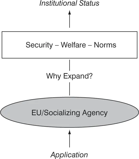 As all actors are considered strategic and self-interested utility maximizers, they aim at maximizing their benefits and minimizing their costs. The intra-organizational decision-making process will turn out as a two-level bargaining process (Putnam 1988). On the external side, the bargaining process between the organization (EU) and the third state is asymmetrical due to the fact that the third state faces the accumulated bargaining power of the organizationâs member states. Another bargaining process will, however, occur internally, i.e. among the organizationâs member states. Here, the more powerful member states will threaten the less powerful actors with their preferences (enlargement/ non-enlargement) or â in the event of equal voting rights â a group of member states will try to form a majority coalition to achieve their preferences. In the event of unanimous decision making â as is the case in the EU â enlargement cannot take place without each member st...