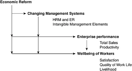Our framework of analysis is illustrated in Figure 1.1. We begin with reform, by which we mean changes to the rules governing business operations (for example, laws about employment relations, about the ownership of state-owned enterprises (SOEs) or about competition) and to the cost, delivery and availability of such community services as health, education and housing. These reforms, we argue, have led to changes in the management practices of enterprises â both their human resource management (HRM) and other forms of intangible management. But management practices have changed only slowly and only in some enterprises, and there has been little corresponding change to the role of unions within workplaces. Nevertheless, we do find that the working conditions of people and their satisfaction with conditions both depend on forms of intangible management, especially what we denote as soft management. (Of course, different categories of people â locals/migrants and young/old â do experience these new workplaces differently, or perhaps are treated differently in them.) Furthermore,