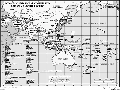 Figure 1.1 Economic and Social Commission for Asia and the Pacific. Source: The UN Cartographic Section, ESCAP, no. 3974 Rev. 14, June 2007