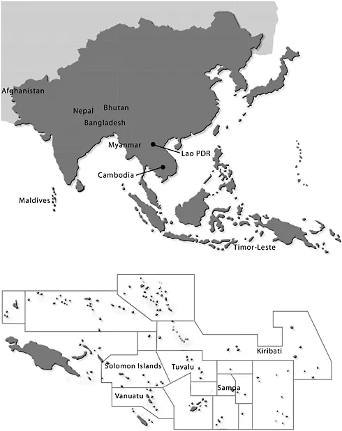 Figure 1.2 Location of least developed and landlocked countries in Asia and the Pacific. Source: UNDP (2005, X).