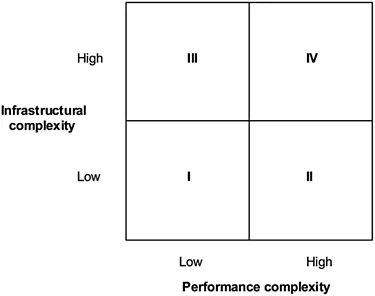 The first relates to the performance complexity itself (Danaher and Mattsson, 1998), a function of characteristics such as the level of knowledge embedded in the performance (e.g. the ability to type up doctors notes compared with the ability to read an X-ray chart) and/or the level of customer interaction (e.g. scripted âperformancesâ compared with âperformancesâ that are â ⌠empathetic and facile with respect to language and cultureâ: Youngdahl and Ramaswamy, 2007). Knowledge-intensive and highly interactive services like management consultancy have traditionally presented a significant challenge for procurement processes because they are difficult to specify ex-ante and, correspondingly, difficult to measure and monitor. Unsurprisingly, this has often meant that they are a controversial area of public and private expenditure. Second, there is the complexity of the infrastructure through which performance is enacted. This complexity can be largely characterized by the extent to which it is âbespoke or highly customizedâ (Brady et al., 2005). Infrastructure procurement is often irregular, and, as a result, buyers often rely heavily on specialist suppliers, indeed increasingly firms âknow less than they buyâ especially in the light of recent outsourcing trends (Davies, 2003). Figure 1.1 combines these dimensions into a matrix of total procurement complexity.