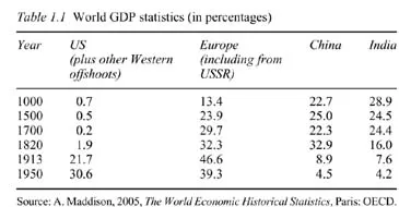 Underlying the optimistic commentaries on the implications of the current surge in the economic (and thereby geopolitical) power of China, and to a lesser extent India, is an arguably over-simplistic notion. Based upon a misreading or an ignorance of history, it has often been assumed that the present remarkable growth patterns of China and India in contrast to those of the United States, Japan, or Western Europe, are unique or at least unparalleled in the recorded past. This is a flawed notion, as during the late seventeenth century both China’s and India’s relative wealth and geopolitical power far surpassed that of the Western world. In the early 1800s, for example, the two countries contributed nearly half of the world’s income. As Dalrymple (2007: 1) pointed out, ‘historically, South Asia was always famous as the richest region of the globe .... At their heights during the 17th century, the sub-continent’s fabled Mughal emperors were rivaled only by their Ming counterparts in China’. He further suggested that it was colonialism which ‘slowly wrecked the old trading network and imposed with their cannons and caravels a Western imperial system of command economy’ (Dalrymple 2007: 1). Thus, rather than being a new phenomenon, the current economic growth in both China and India represents little more than a ‘return to the traditional pattern of global trade’ (Kelly, Rajan and Goh 2006; Mahbubani 2008).
