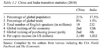 Whilst at least some of the exaggeration surrounding the developments has been driven by the self-promotion (or wishful thinking) of authors from these two neighbouring countries (Ramesh 2005; Huang 2010), many external observers have also noted their above average development and economic growth statistics. Table 1.2 compares some of these pertinent indicators.