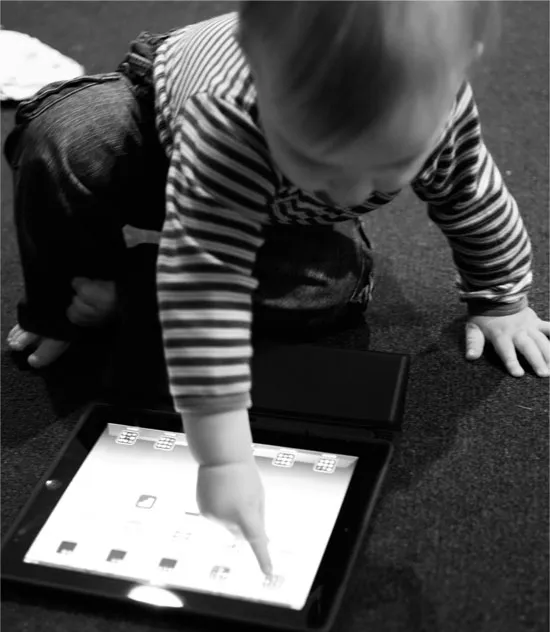 FIGURE I.1 Early steps in learning to live through the screen: a toddler interacts with an iPad, 2012. Photo: Tia Henriksen.