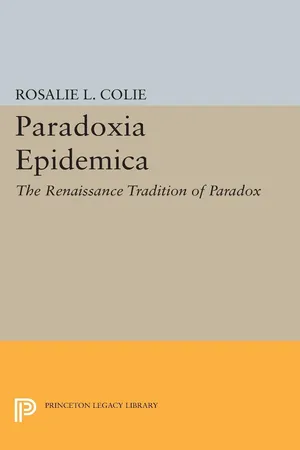 Paradoxia Epidemica is a broad-ranging critical study of Renaissance thought, showing how the greatest writers of the period from Erasmus and Rabelais to Donne, Milton, and Shakespeare made conscious use of paradox not only as a figure of speech but as a mode of thought, a way of perceiving the universe, God, nature, and man himself. The book consists of an introduction (historical and topological) and sixteen chapters grouped according to broad types of paradox: rhetorical, theological, ontological, epistemological. Within this framework the author interprets individual writings or art forms as parts of a rich tradition.