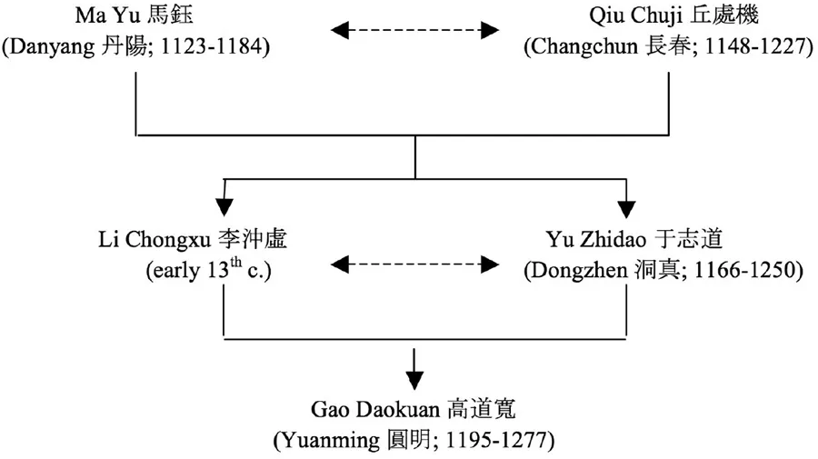 Gao Daokuan was a third-generation member of the Complete Perfection Daoist movement and thus a Complete Perfection monk in the monastic order. As discussed in more detail below, he was a disciple of the somewhat obscure Li Chongxu (early thirteenth c.) and then of Yu Zhidao (1166–1250), both of whom were second-generation Complete Perfection adherents.