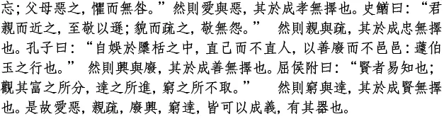 This is why Zeng Zi said: “(If your) parents love you, (then you should be) happy but not neglectful; (if your) parents hate you, (then you should be) fearful but without reproach.” Thus, (a parent’s) love or hate can equally help (us) perfect (our) filiality.4
