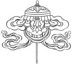 The significance of a parasol as a symbol is not too mysterious. The ability to protect oneself against inclement weather has always, in all cultures, been a status symbol. In fact, even in Europe until a few decades ago, a sunshade was a status symbol for society ladies. A few thousand years ago in a country like India, anyone who owned such a luxury object was certainly one of the well-to-do. And if, in addition, one had servants who carried the parasol, then indeed oneās rank and wealth were made very clearly manifest. Thus, the development of the meaning of the parasol as a symbol of power or of royal rank is easy to trace. Also, the fact that it protected the bearer from the heat of the sun was transferred into the religious sphere as a āprotection against the heat of the defilements (nyon-mongs, Skt. kleÅa).ā