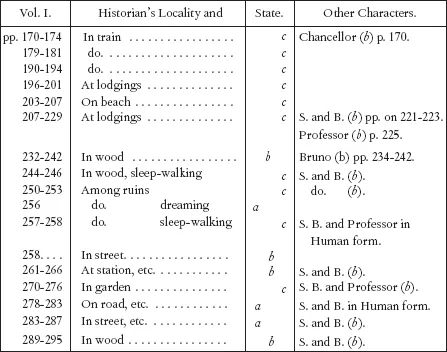 II. p. 325. Bruno’s soliloquy (“For its father, etc.”) was actually spoken by a little girl, looking out of the window of a railway-carriage.