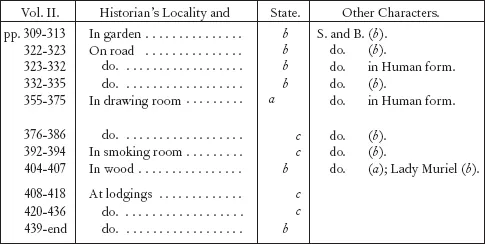 I will here tabulate the passages, in both volumes, where abnormal states occur.