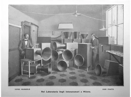 Unfortunately, Russolo argued, this old, “sacred” realm of music had degenerated into irrelevancy, its sounds losing their exotic and awe-inspiring character and becoming so familiar as to seem, for a futurist at least, deadeningly boring.19 In contrast, the use of noise served two interrelated functions: (1) it negated the sacred space of music’s circumscribed sound field, thereby freeing listeners from their habitual perceptual modalities; and (2) it called attention to modern acoustical experiences. As Russolo explained,