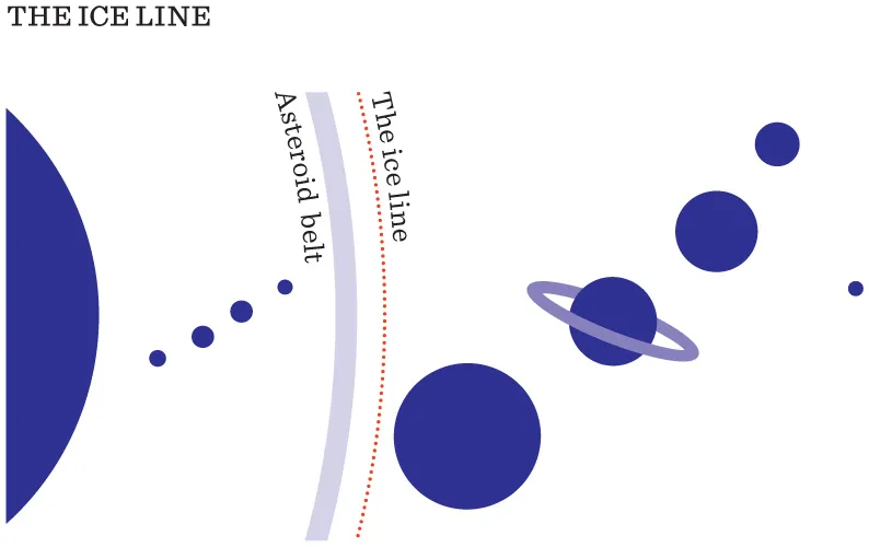 The ice line divides a solar system into two zones based on temperature; one warm enough for liquids, the other frozen solid.