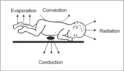 Heat loss between the newborn and the environment occurs via four major mechanisms including conduction, convection, radiation, and evaporation (Figure 1).