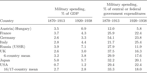 Table 3. Military Spending of the Great Powers in Peacetime, 1870â1913 and 1920â1938.