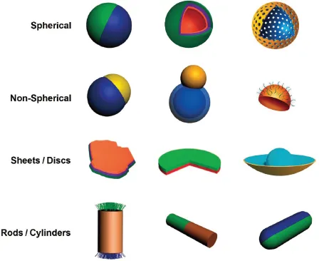 Inspired by the initial research of French scientists [1,2] and encouraged by Gennes’ lecture [3], researchers chose all kinds of spheres as research objects, for example, monodispersed polystyrene (PS) spheres and silica spheres. So, at the first research stage, the Janus particles displayed only chemical asymmetry, not structural asymmetry. Compared with spheres, anisotropic particles have more interesting and amazing properties due to their higher length or diameter or aspect ratio and concomitant structural and chemical distribution. In this chapter, we will focus on Janus particles with anisotropic shapes, especially non-spherical, sheets/disks, rods/cylinders, and other interesting morphologies, and review the synthesis methods and emerging applications of anisotropic Janus particles. Finally, we will present a summary and emerging trends as well.