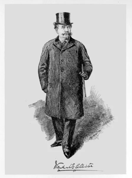 Later, McAllister caromed from one region of the country to the other. As a young man, he ingratiated himself to a wealthy New York spinster aunt who left him a mere thousand dollars in her will (all of which he spent on evening dress for a ball given by Mrs. John C. Stevens, whose husband was the first commodore of the New York Yacht Club). Returning to Savannah, Ward studied law and, with his cousin Sam, sped to San Francisco in 1850 to join the senior McAllister’s new law office in the heady Gold Rush days of the California forty-niners. The legal work was lucrative, though San Francisco’s raucous, ribald “Barbary Coast” was repellent to a young man who already considered himself a connoisseur of fine things and claimed French ancestry and elite family ties. (His father’s favorite maxim was “Be sure, my boy, that you always invite nice people.”)