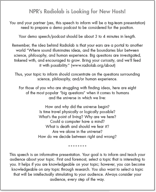 Figure 11.2 Radiolab āSpeech to Informā assignment/invitation