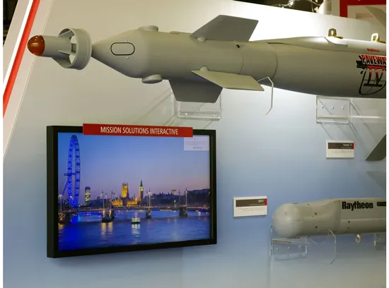 Figure 1.1 âPaveway 4â guided bomb, manufactured by Raytheon in the UK, DSEI2017 (Authorâs photograph).