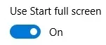 - And then turn on Use Start full screen, as shown in the following screenshot, to enable the Tablet mode: