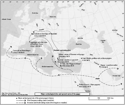 THE GEOGRAPHIC ORIGIN AND HISTORIC SPREAD OF THE OPIUM POPPY (MAP II)