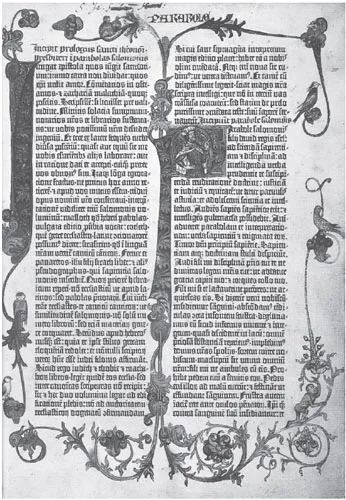It has been a matter of furious dispute as to who exactly should receive the credit for the invention of movable type, but the laurels are now generally allowed to rest on the brow of Johann Gutenberg (or Gensfleisch zur Laden â the name Gutenberg was taken from his family house). He is the least shadowy figure in a small, ill-lit cluster of otherwise dubious claimants. There is no book or printed work in existence which bears his name, and no portrait was done of him in his lifetime. His exact date of birth is uncertain, but he was born in Mainz in Germany in the late 1390s, or possibly at the start of the fifteenth century. Any evidence is purely circumstantial, but there is enough of it to make him by far and away the strongest and most feasible contender. To him, also, falls the credit for the first major printed work in the Western world, the 42-line Bible, published about 1455.