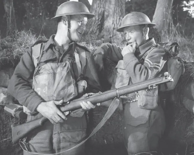 Stranded in France with the British Expeditionary Force, British ‘Tommy’, Corporal Tubby Binns (John Mills, right), contemplates his next move in Leslie Norman’s Dunkirk (1958). Courtesy Kevin Wilkinson Collection.