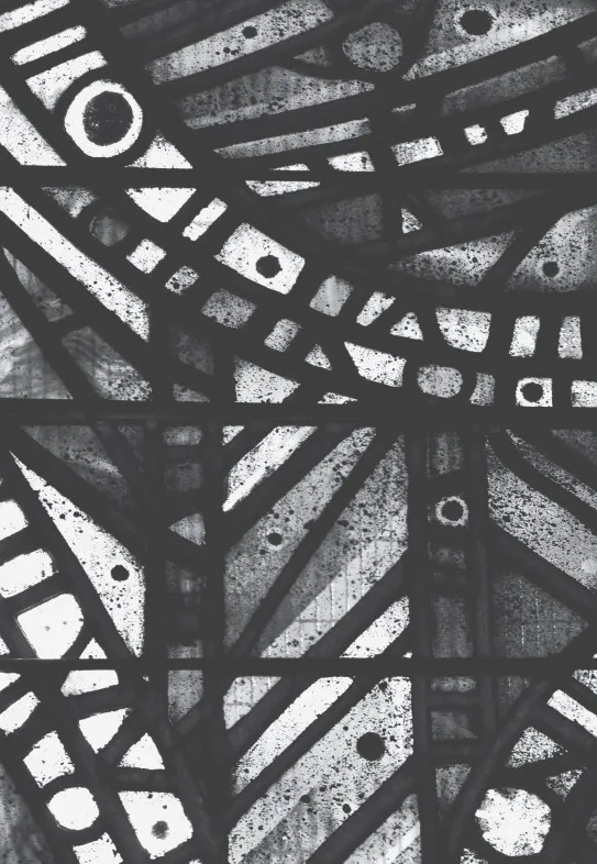 Although deliberately abstract windows became popular in the postwar era, abstraction goes back a long way. I suspect that much pictorial stained glass from medieval times onwards becomes abstract when seen through failing eyes or from a distant pew, and without aids such as spectacles, lenses and binoculars: all that is discerned is the play of colour and light, blocks and shapes, and black lines, while the details blur and become indistinct. And although it is sometimes claimed that the innovative, rule-breaking 1915 West Window in St Mary, Slough, designed by the post-impressionist artist Alfred Wolmark (1877–1961), is the sole forerunner of abstract glass, there are plenty of examples of simple shapes and abstraction in medieval, Victorian and Arts and Crafts windows. The latter often contain beautiful abstract sections of thick, streaky or slab glass and innovative, organic lines of leading. Indeed, much background glass in pictorial windows of all periods is made up of abstract designs and, if you focus and crop, so to speak, you can find all sorts of stunning, colourful and stimulating patterns in churches.