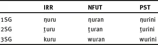 Table 1.1: Fragment of the verb stem paradigm /ɾu/ ‘go’.